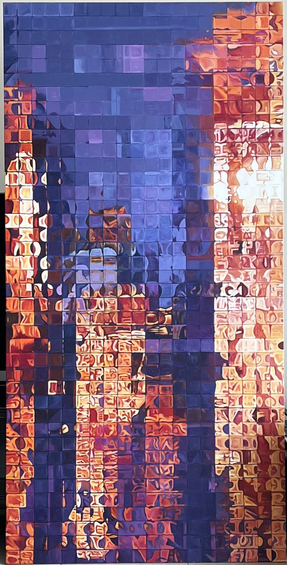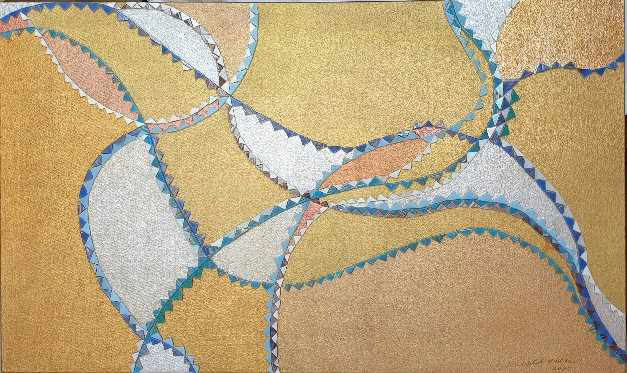 Mosaic pieces and acrylics on canvas