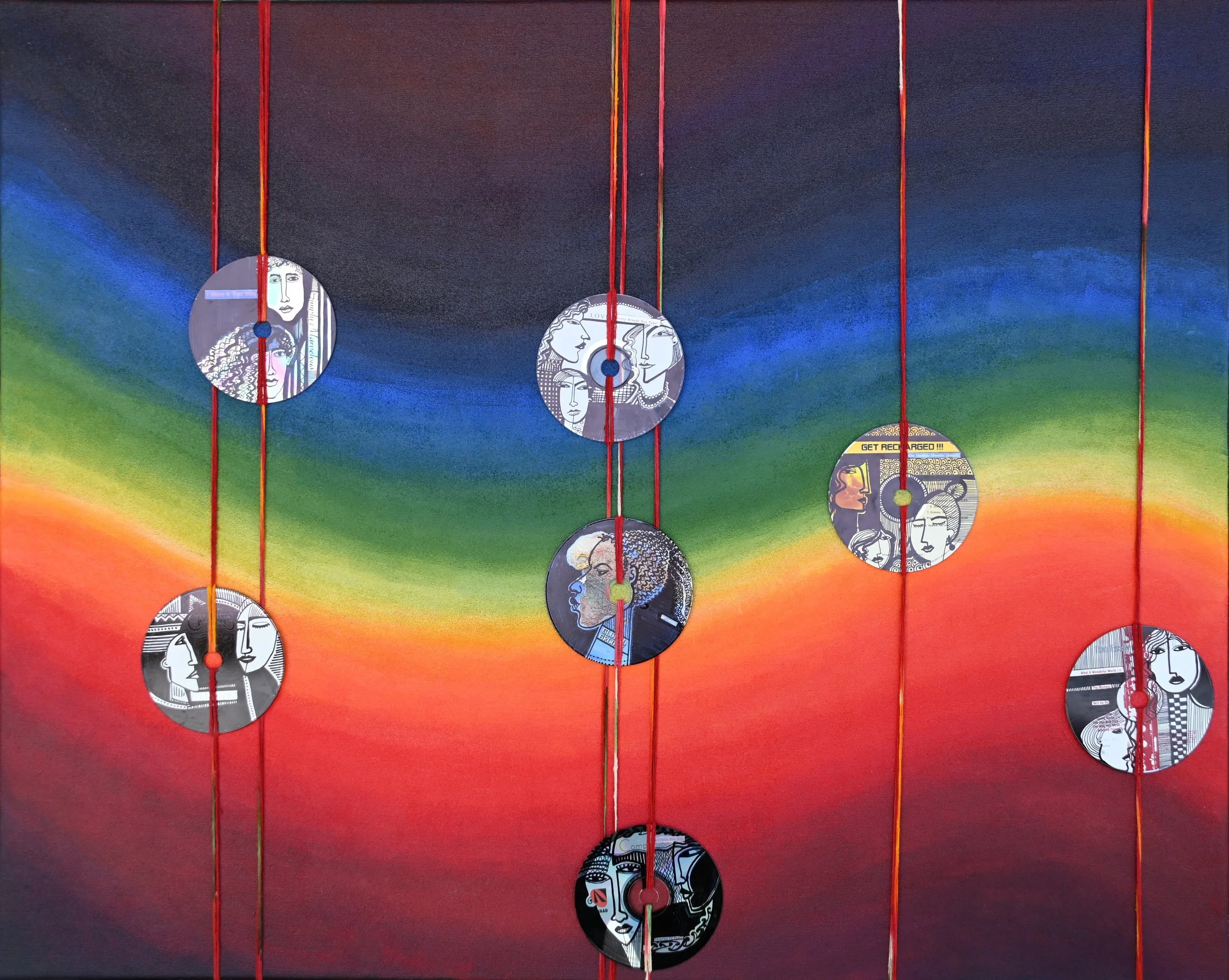 CDs and acrylics on canvas