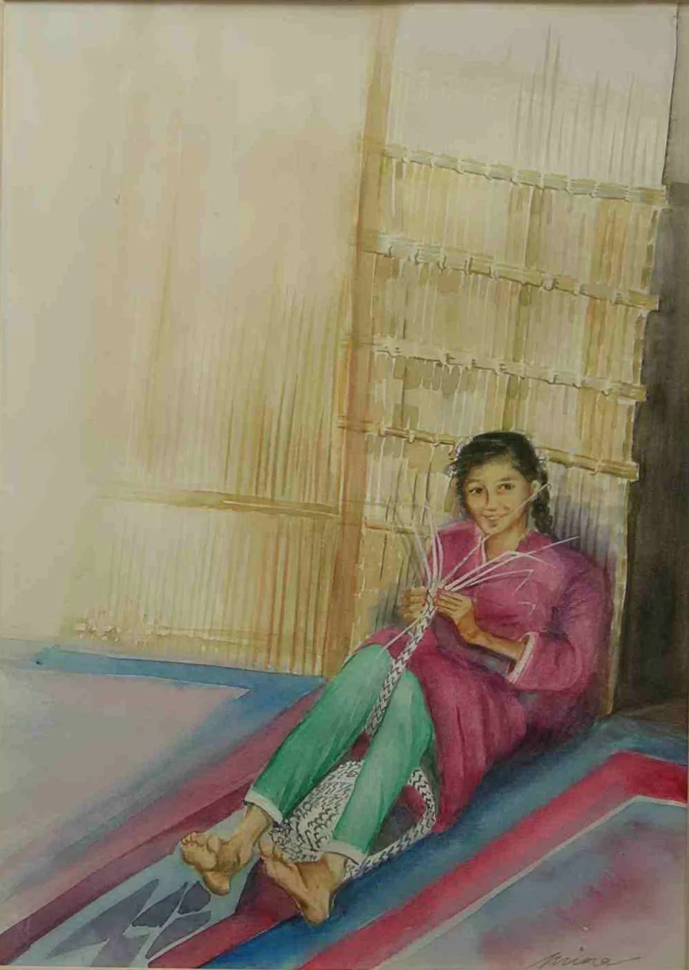 • This young weaver learns the art of weaving