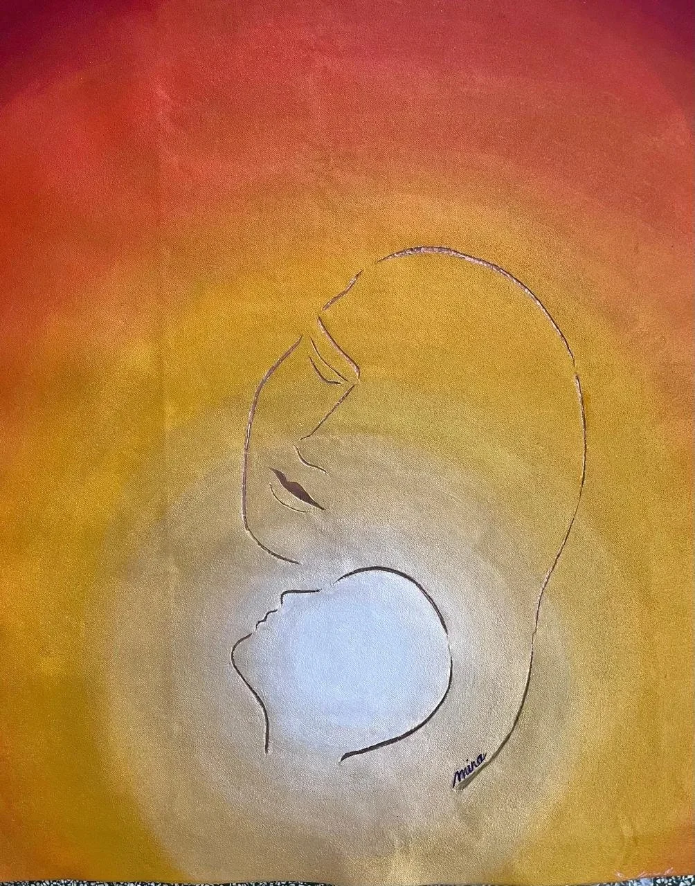 • This artwork marked the beginning of my experiments of adding copper to my work. The canvas was cut to reveal the beautiful copper sheet stuck underneath the canvas. The colours represent Gandhiji's search for truth - leaving the darkness and walking towards the light.