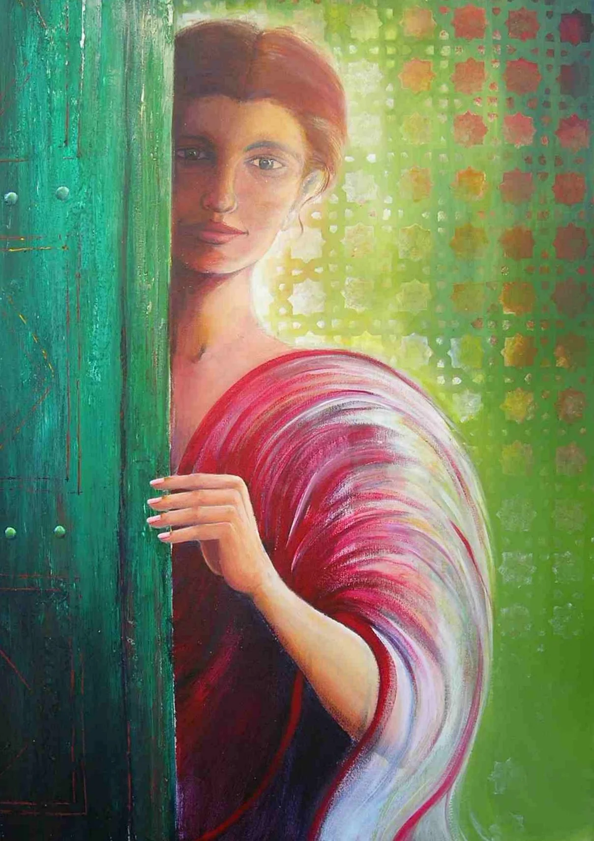• A portrait of a girl in Khambat (formerly known as Cambay), a city in the Indian state of Gujarat. The shadow of a grilled window plays on her face as she is seemingly deep in thought.