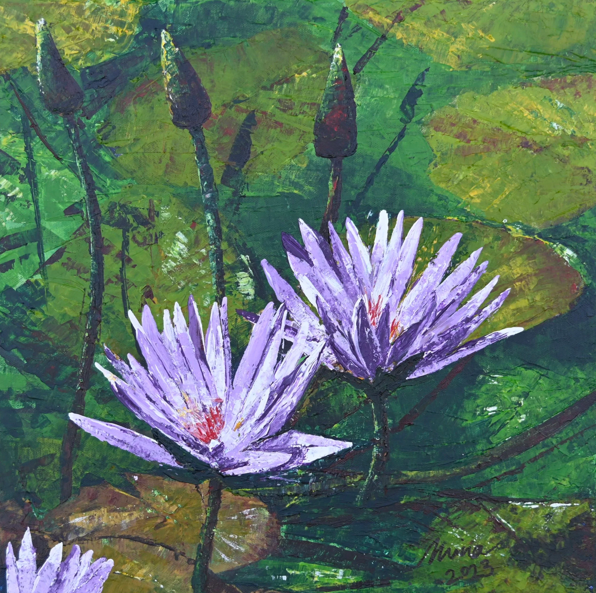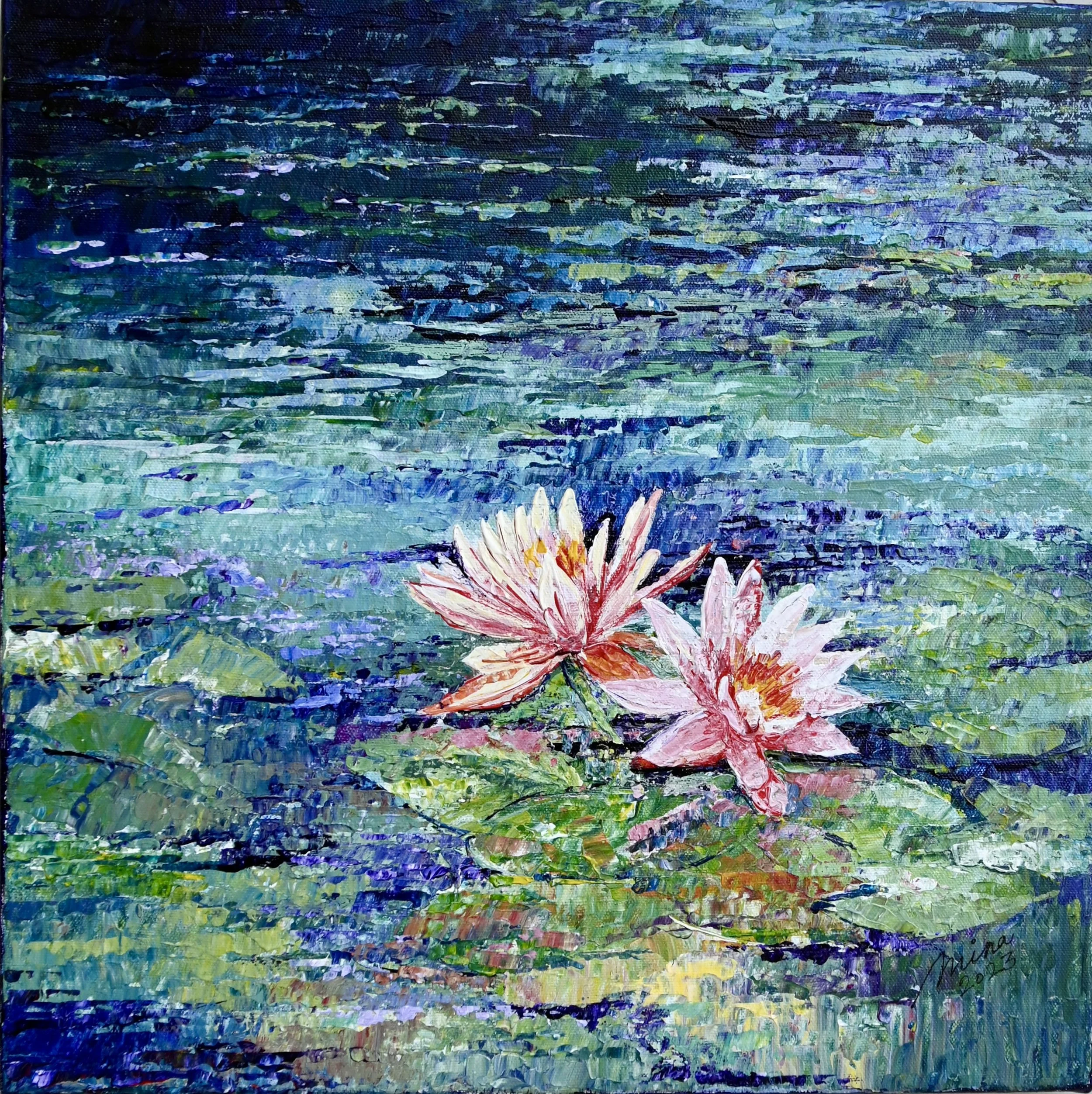 Water lilies, a symbol of beauty and peace, gently float in a peaceful pond.